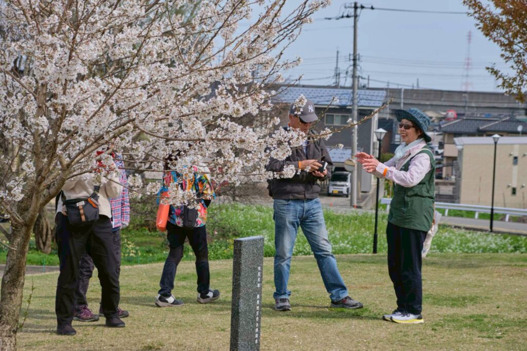 日本中の桜を追っかけているガイドさんから、呉羽おとめ枝垂れのお話を詳しく解説 頂きました。