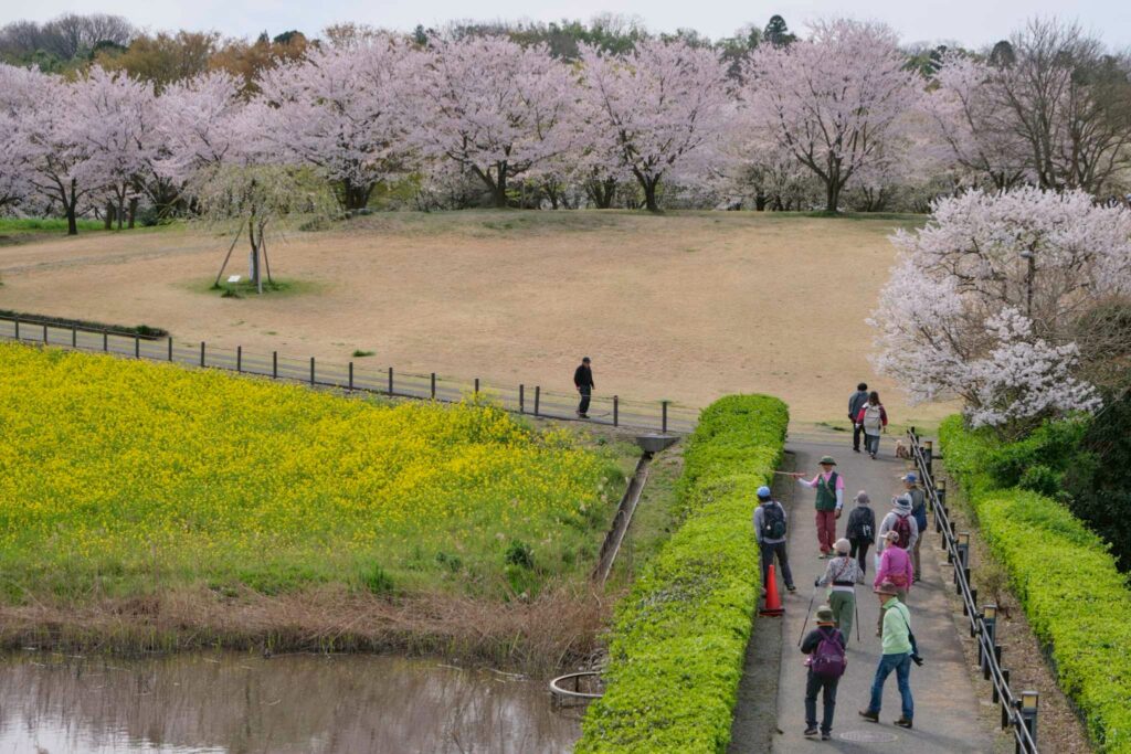 菜の花畑も満開。桜のピンクと対照的でワンダフルな取り合わせです。